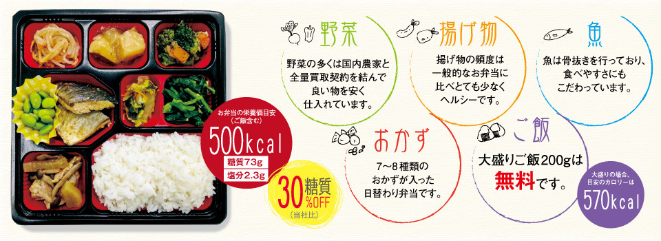 なないろ弁当は管理栄養士がオフィスで働く人の健康を考えて献立を作成したヘルシーなお弁当です。